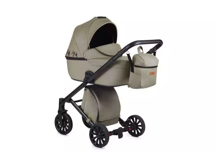Внешний вид. Практически каждый элемент конструкции выполнен из эко кожи, что не дает нагреваться коляски летом и быть слишком холодной зимой. Данный материал также является влагоотталкивающим и не пропускает вредные солнечные лучи. Вес рамы и прогулочного блока составляет около 12 кг.