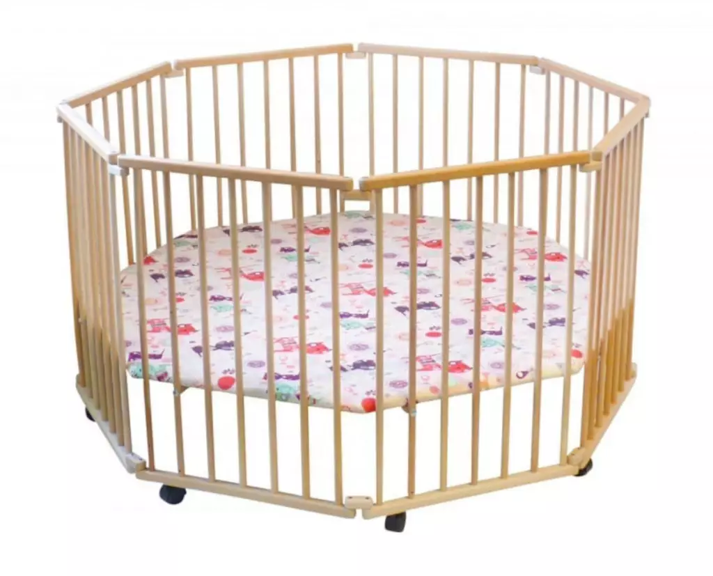 В отдельную категорию можно выделить манежи с деревянными рейками, они имеют стационарную конструкцию, экологичны и безопасны. Однако такой детский деревянный манеж невозможно складывать, что крайне затрудняет транспортировку, а при некачественной обработке поверхности могут оставлять занозы. По мнению специалистов важно обращать внимание на расстояние между рейками. Оно не должно быть больше 6 см. Больше о таких ограждениях вы можете прочитать в нашей статье:Ворота, ограждения и барьеры. Как сделать ваш дом безопасным для ребенка?