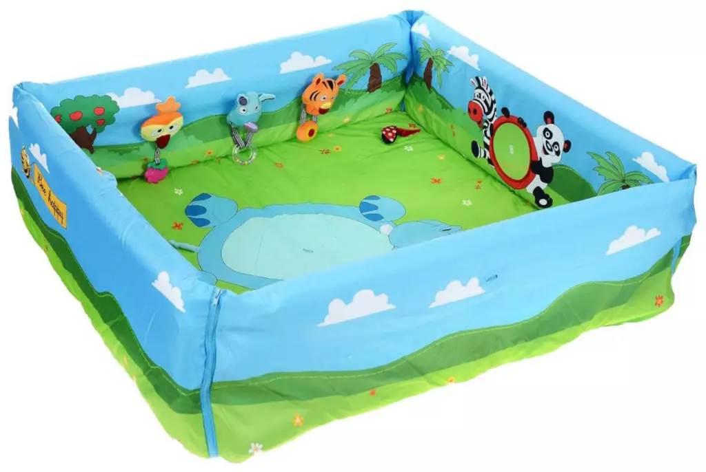 Надувные манежи представляют собой не только оградительное устройство, но и бассейн. Обычно используется в летний период на открытом воздухе. Благодаря специальному дну можно использовать в качестве батута. Формы манежей также весьма разнообразны. Встречаются: