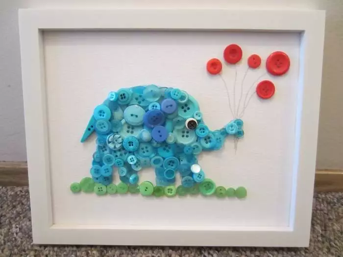 Нарисуйте на картоне основу для будущей поделки. Это может быть дерево, цветок или контур какого-либо животного. С помощью клея зафиксируйте на рисуноке пуговицы. Такое изделие не только поможет малышу раскрыть свои таланты, но и отлично украсит детскую комнату.