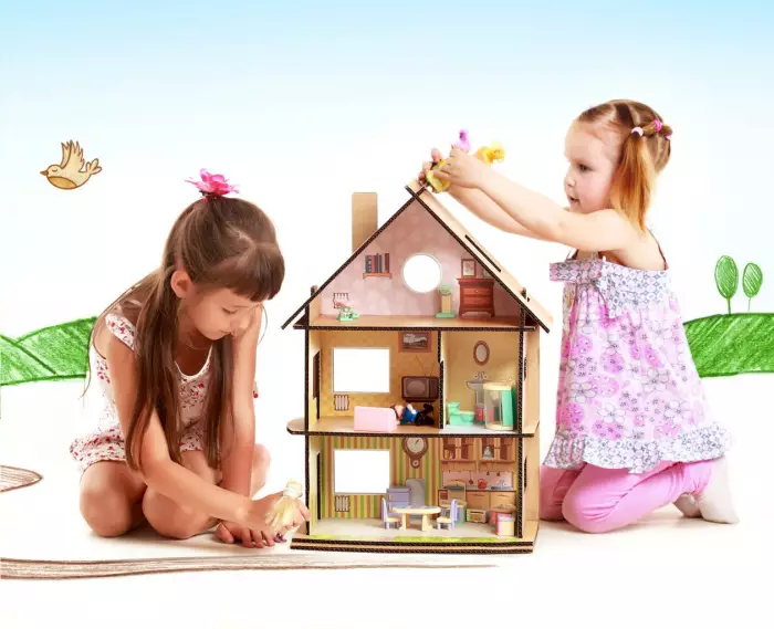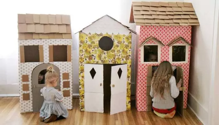 Коробки небольшого размера – отличная основа для кукольного домика. Возьмите несколько коробок из-под обуви и склейте их между собой. Вы получите многоэтажный домик.