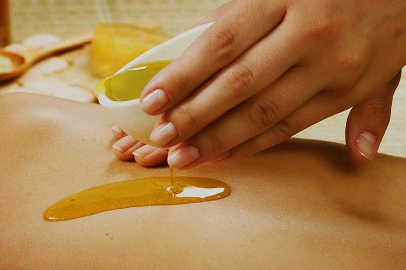 - Кожа промакивается полотенцем, но не растирается, и только после этого на нее наносится мед мягкими поглаживающими движениями;
