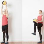 - Увеличивайте нагрузку используя более тяжёлый медицинский мяч, более широкую амплитуду движения или, если захотите, добавляя к упражнениям прыжок.