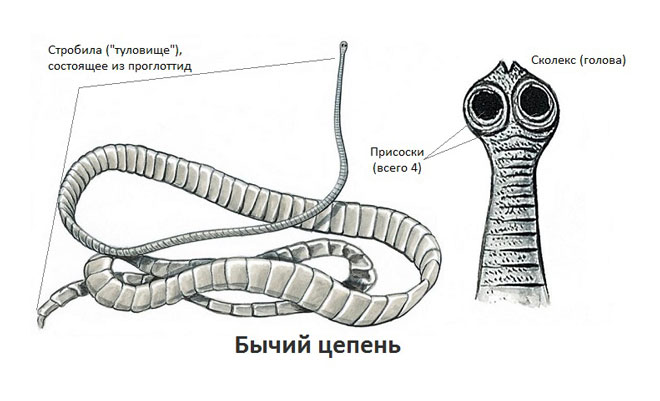 Бычий цепень –один из наиболее крупных гельминтов, который паразитирует в организм человека. Он провоцирует различные нарушения пищеварительного тракта и ухудшает общее состояние организма. Этот паразит очень опасен для здоровья человека. За весь период развития ленточный червь способен достигать 15 м в длину, а тонкая кишка взрослого человека составляет всего 6 м.