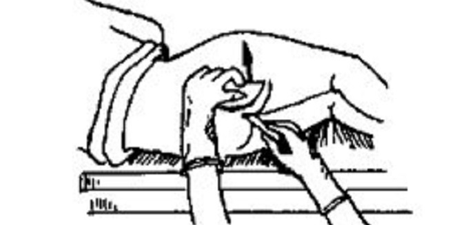 - Следует раздвинуть ягодицы и обвести палочкой вокруг анального отверстия.
