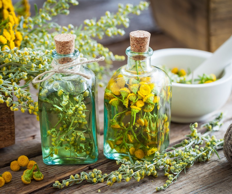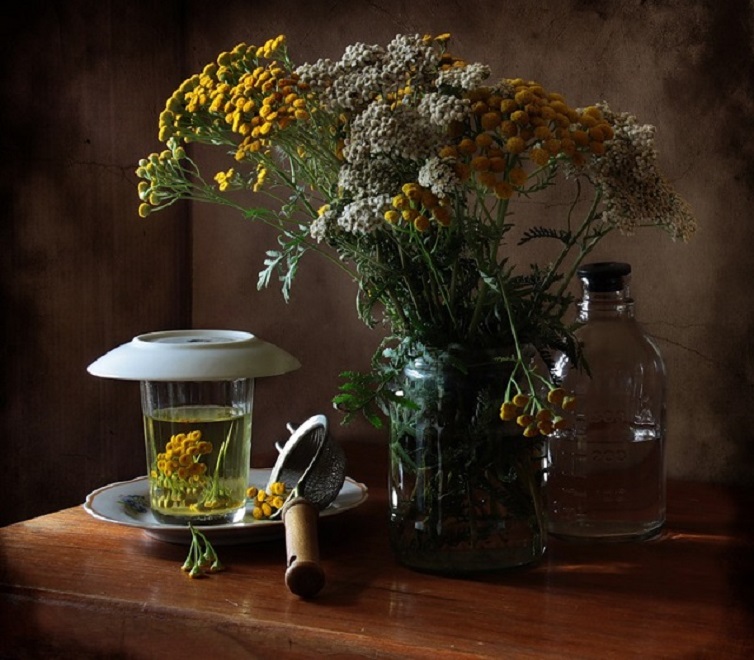 Необходимо взять 50 г золототысячника, 30 г цветков пижмы, столько же бессмертника, все измельчить в порошок, сложить в стеклянную емкость.
