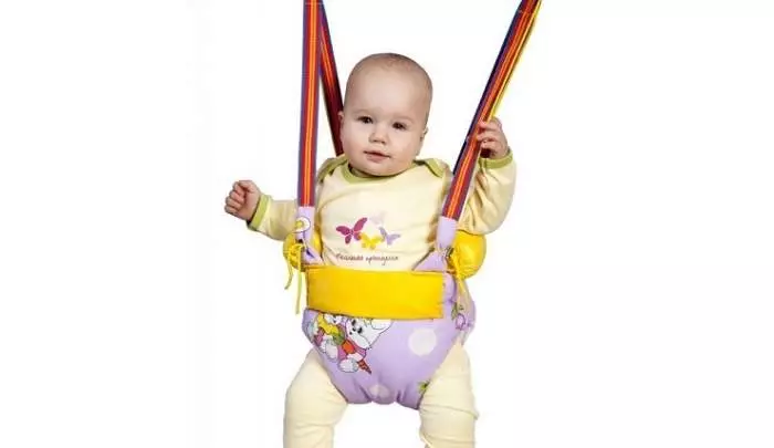 Ребенка можно положить в слинг, либо усадить в кенгуру. Если кенгуру оснащено ремнями-пружинками, которые в свой очередь крепятся в дверной проем, это уже называется прыгунками. Проводя в таком приспособлении некоторое время, ребенок учится опираться на ноги, подпрыгивать.