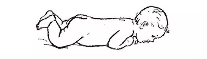 - Тренировке мышц.Лежа в такой позе, малыш рефлекторно приподнимает голову, что способствует укреплению мышц шеи, спины, живота и рук. Это важный аспект для овладения в дальнейшем двигательными навыками.