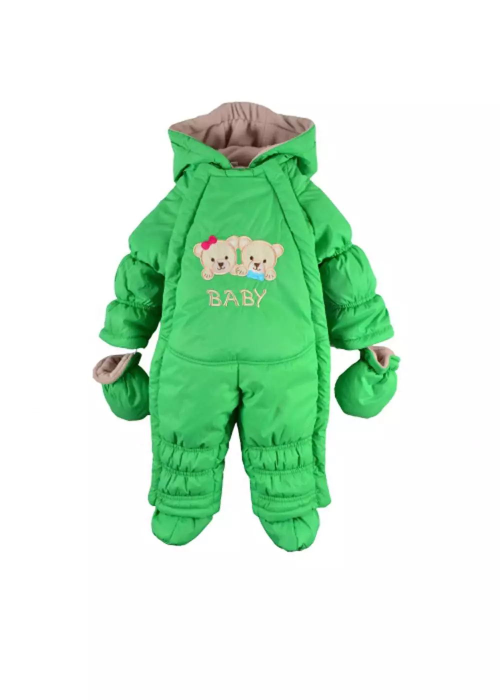 - отсутствие слоя овчины в капюшоне, пинетках и рукавичках;