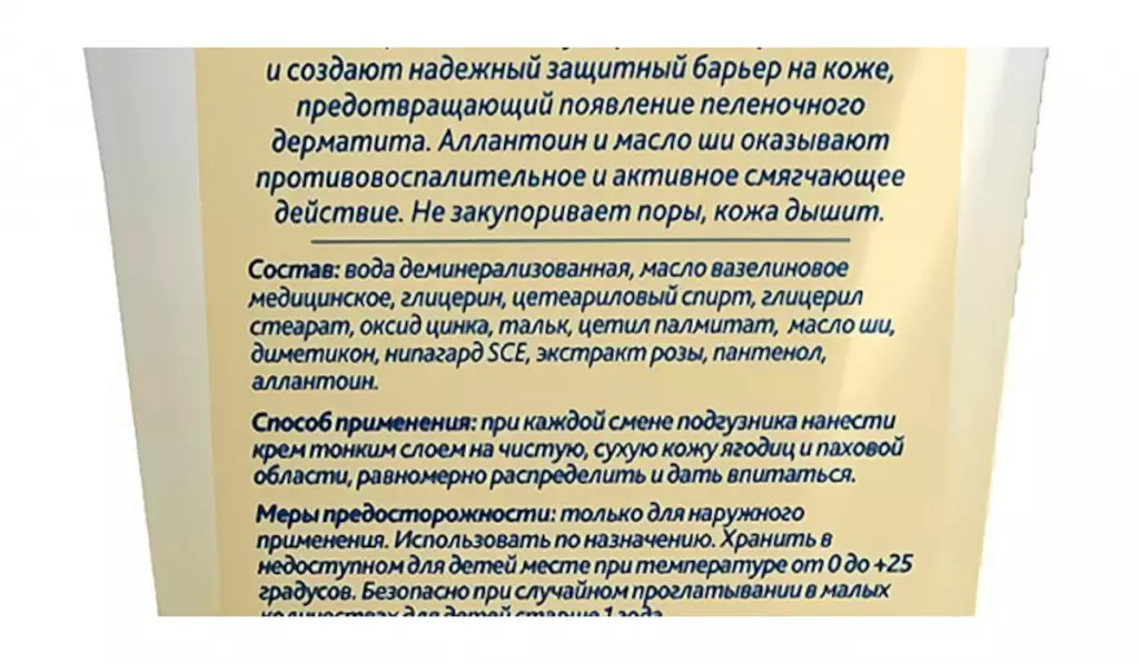 Крем под подгузник: состав
