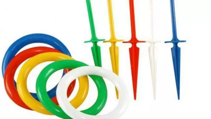 - «Поймай кольцо». Дети играют в паре, отходят друг от друга на расстояние. Один участник держит кольца. Задача второго игрока поймать кольца на палку. После окончания занятия малыши меняются местами.