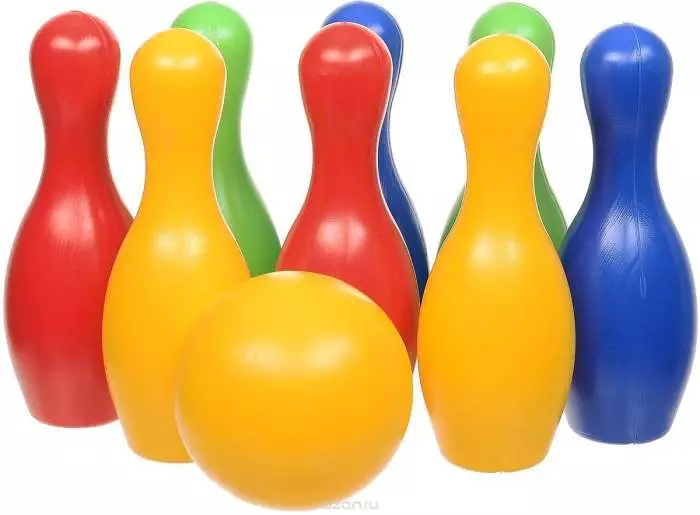 - «Кегли». Малышам необходимо сбить кегли (можно использовать кубики, игрушки) с помощью мяча, прокатив его по полу. Выигрывает тот, кто сбил большее количество предметов.