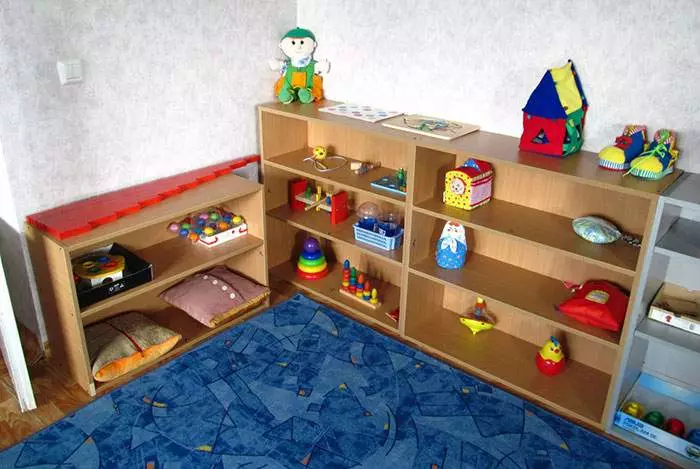 - Сенсорная.Здесь хорошо разложить игрушки с разным материалом и свойствами. Чтобы они могли шуршать, пищать, вкладываться друг в друга. Материал должен быть различным: от мешковины до бархата. Все это поможет малышу на собственном опыте прочувствовать всю разницу.