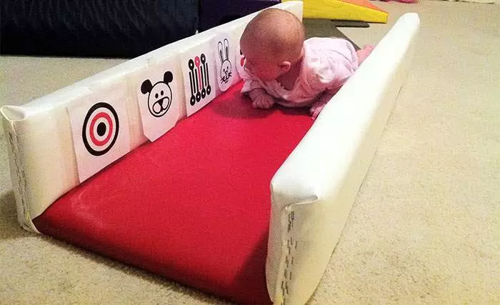 А чтобы малыш быстрее стал развиваться физически, пометодике развития Глена Домана, надо сделать небольшой желоб, по которому пускать ребенка, помогая ему ползать. Делать это надо ежедневно по несколько минут. В целом в день такие физические упражнения могут занимать до 4 часов. Физическая активность, утверждает автор методики развития ребенка, помогает активизировать мозг малыша с первых дней. Он видит игрушки, он пытается их взять, он следит за ними глазами, в это время работает мозг, впитывая информацию об окружающем мире.