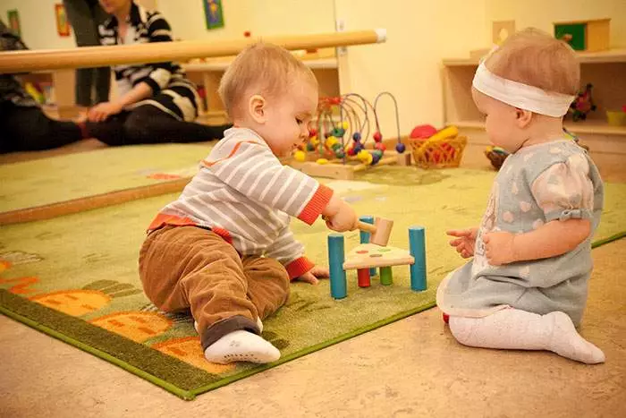 Кстати, делать эти выводы он должен из определенного поведения взрослых и окружающих его детей. ПоэтомуМария Монтессори рекомендует сформировать предметно-обучающую образовательную среду для ребенка, тогда он сможет развиваться самостоятельно. В детских садах такая среда представлена для групп раннего развитияи адаптационных групп, которые проводят свое время по 2-3 часа в саду, находясь только под присмотром воспитателя. Обучаясь в группах дети могут помимо самостоятельного процесса учиться взаимодействовать с другими малышами, делясь своими знаниями и полученным опытом. Так, например, при игре в баночки, более опытный ребенок покажет как именно нужно вставлять баночки и в какие отверстия. Какой результат будет ожидать его.