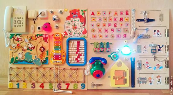 - Если у вас нет определенных материалов и игрушек, необходимыхдля развития ребенка, сделайте их своими руками. Например, сами нарисуйте для ребенку азбуку и плакат с цифрами. Сшейте развивающий коврик или попросите папу, или дедушку собрать бизиборд.