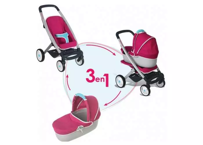 Переноска, она же люлька, весит около 600 грамм, оборудована большим капюшоном, матрасиком, а также съемным защитным чехлом. Все прогулочные коляски Smoby для кукол изготовлены из натурального и безопасного материала для детей. С креплением люльки на раму может справиться каждый ребенок 3-х летнего возраста.