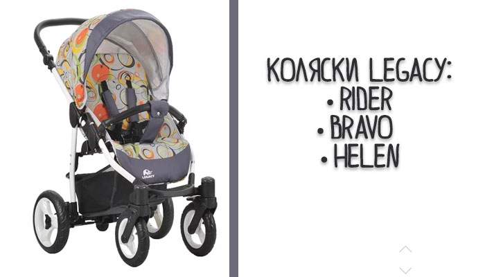 Выбирая современные модели среди всегоразнообразия прогулочных колясок, рекомендуем вам рассмотреть варианты с брендом Legacy. Даже с учетом того, что компания на рынке молодая и новая, отзывы о ее товарах отличные. Масса положительных идет как раз в сторону колес и маневренности управления коляской в любых условиях. Кроме того, большое смотровое окошко, большой капр и удобные ремни безопасности – все это тоже отмечается как покупателями, так и продавцами, как неоспоримые плюсы любой из моделей Legacy (Rider, Bravo, Helen).
