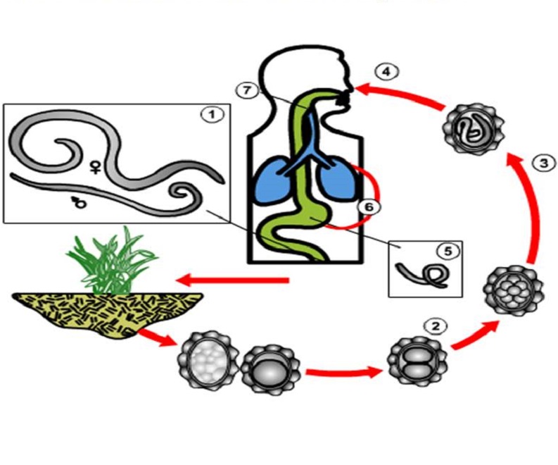 Обратите внимание, что после попадания в почву, они способны не развиваться какое-то время, чтобы дождаться подходящих условий (температура от 15 до 37°C и достаточная влажность почвы). Таким образом, в течение 7 дней из незаразной личинки 1-й стадии образуется заразная 2-й стадии.