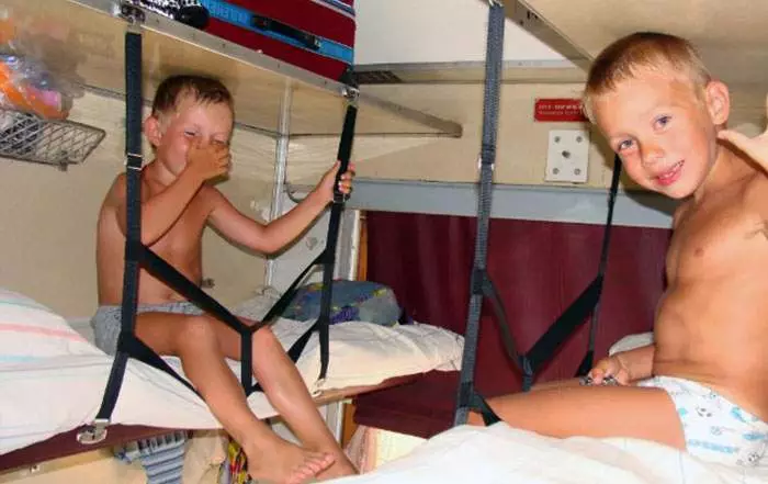 Кроме барьерана верхней полке детям можно вешать ограничитель из ремней. Его вы можете попросить у проводника. Лучше заранее об этом позаботиться, может быть уточнить во время покупки билетов, каким именно образом на этом поезде осуществляется провоз детей на верхних полках.