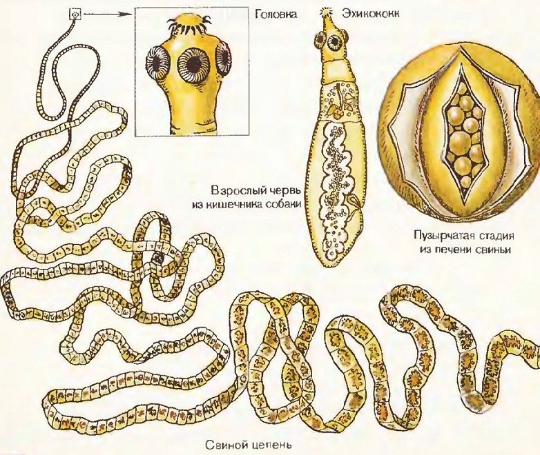 Одним из наиболее опасных видов являются ленточные черви. Это класс гельминтов цестоды, характерной особенностью которого является то, что они паразитируют в организме как животных, так и человека.