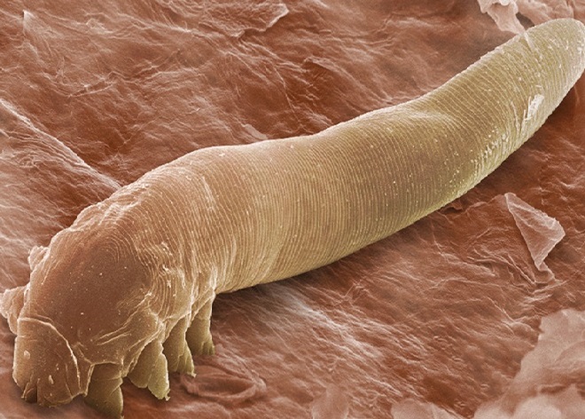 Это обязательный паразит, которому для жизнедеятельности необходим человек. Он питается кожным секретом, располагается на слизистой оболочке глазного яблока, коже человека и волосяных луковицах. Для демодекса характерны следующие симптомы: