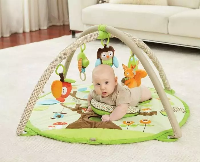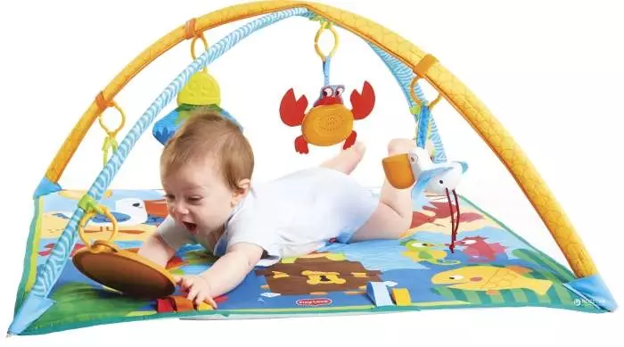 Яркие цвета коврика и нанесенные на него изображения животных позволяют ребенку познакомиться с животным миром и научиться различать оттенки. Зеркальца, кармашки и узелки развивают воображение и тактильные ощущения младенца, а музыкальные эффекты, которые присущи большинству моделей, помогают развлечь кроху.
