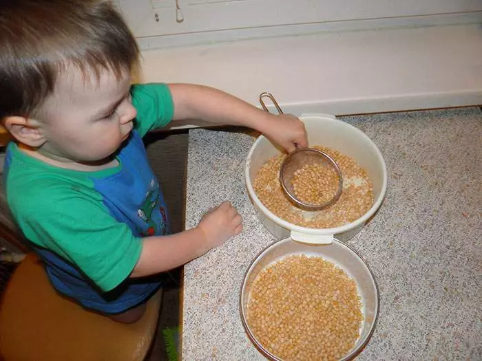 - Груз. Грузом может быть любая крупа, но лучше все-таки исключить манку и крупы мелкого помола, так как будет много пыли, которой ребенку дышать не стоит.